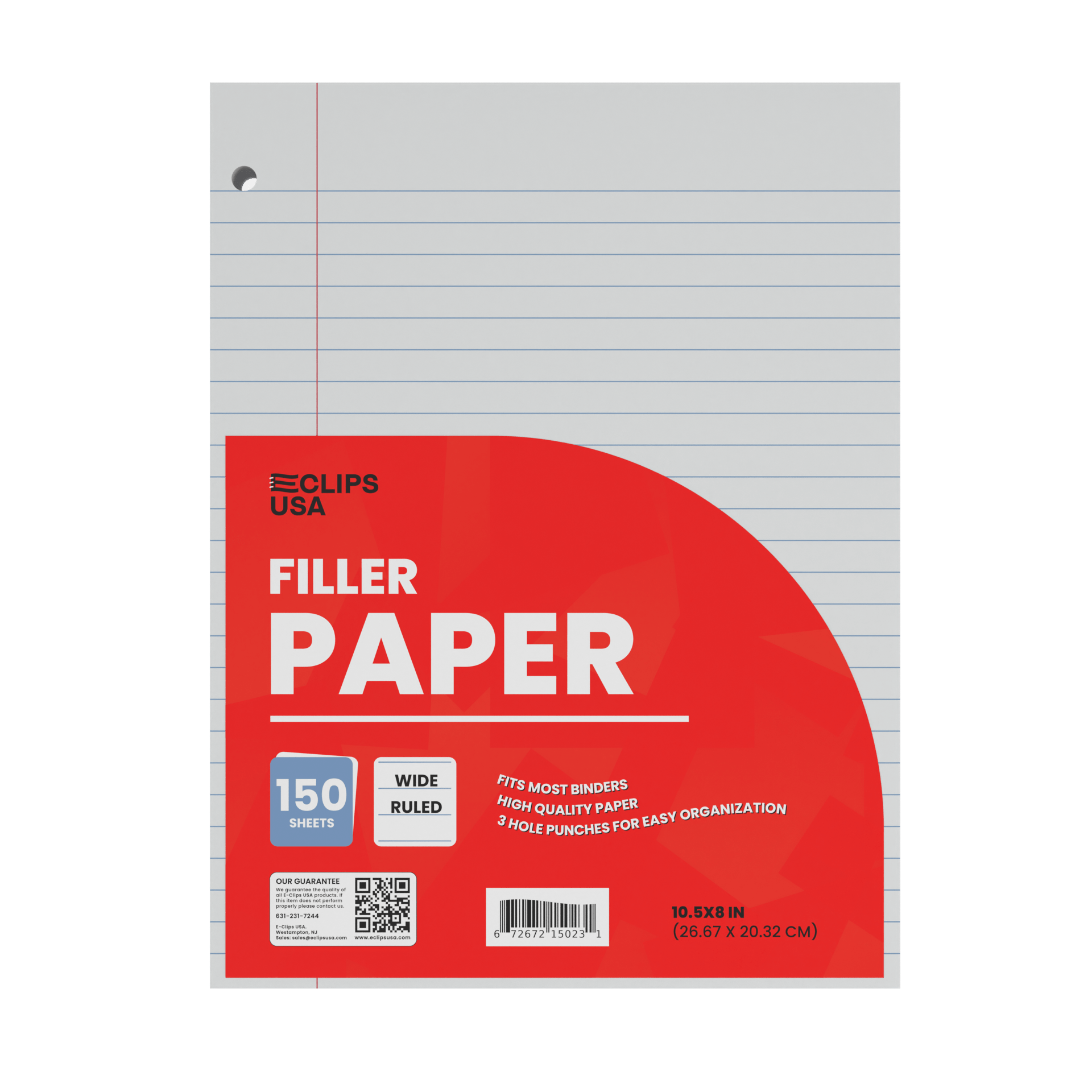 The crisp white color of the paper enhances visibility and contrast, making your handwriting stand out. Whether you’re jotting down lecture notes or drafting important documents, this filler paper is an essential tool that combines functionality and ease of use. Choose our wide-ruled filler paper for a reliable and efficient writing solution!